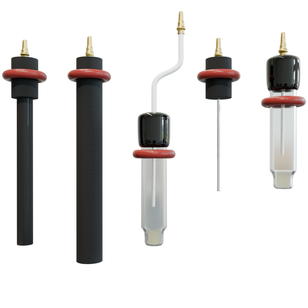 We present the most used electrode types including Glassy carbon, Graphite rod electrodes with Pt wire and Ag/AgCl Ag/Ag⁺ reference electrodes with tubing. All parts can be disassembled and used as you wish. You can use all parts as an asset and change materials procedurally. This means easier electrode modification in the 3D world.